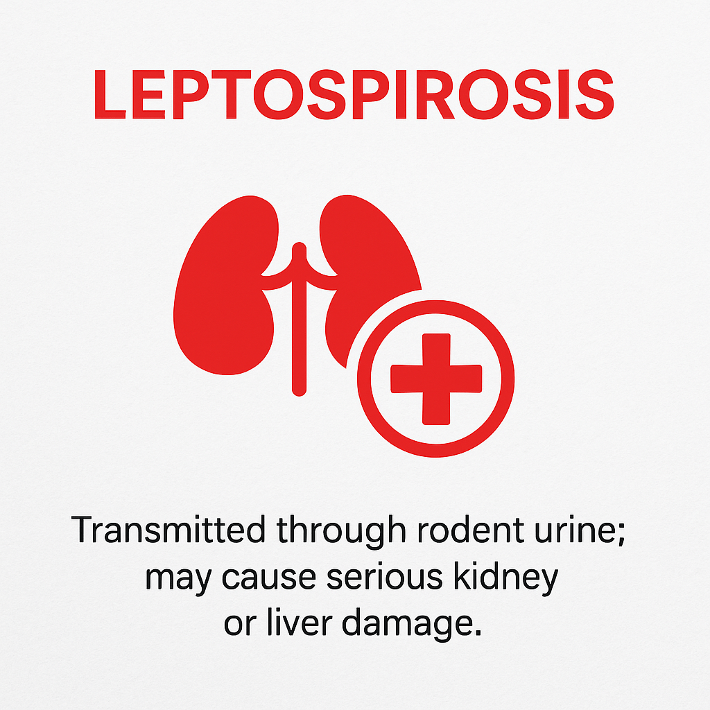Transmitted through rodent urine; may cause serious kidney or liver damage.